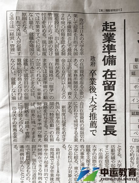 自据日本媒体报道,为给在日本留学的外国留学生发明创业条件,